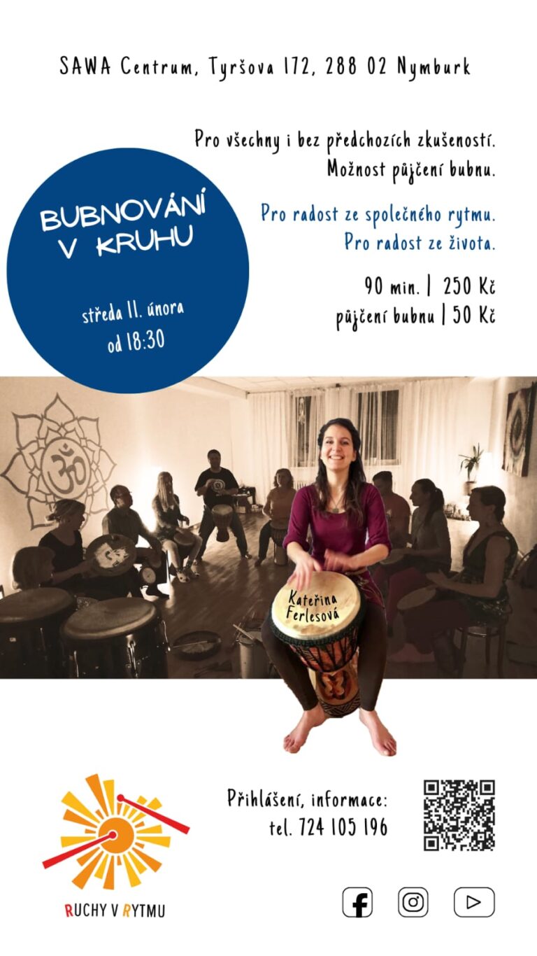 Nemáte s kým bubnovat? Nebo jste si to vždy chtěli vyzkoušet? Přijďte. Pro bubeníky všech úrovní. Rytmus jako most mezi lidmi, most k sobě samému.